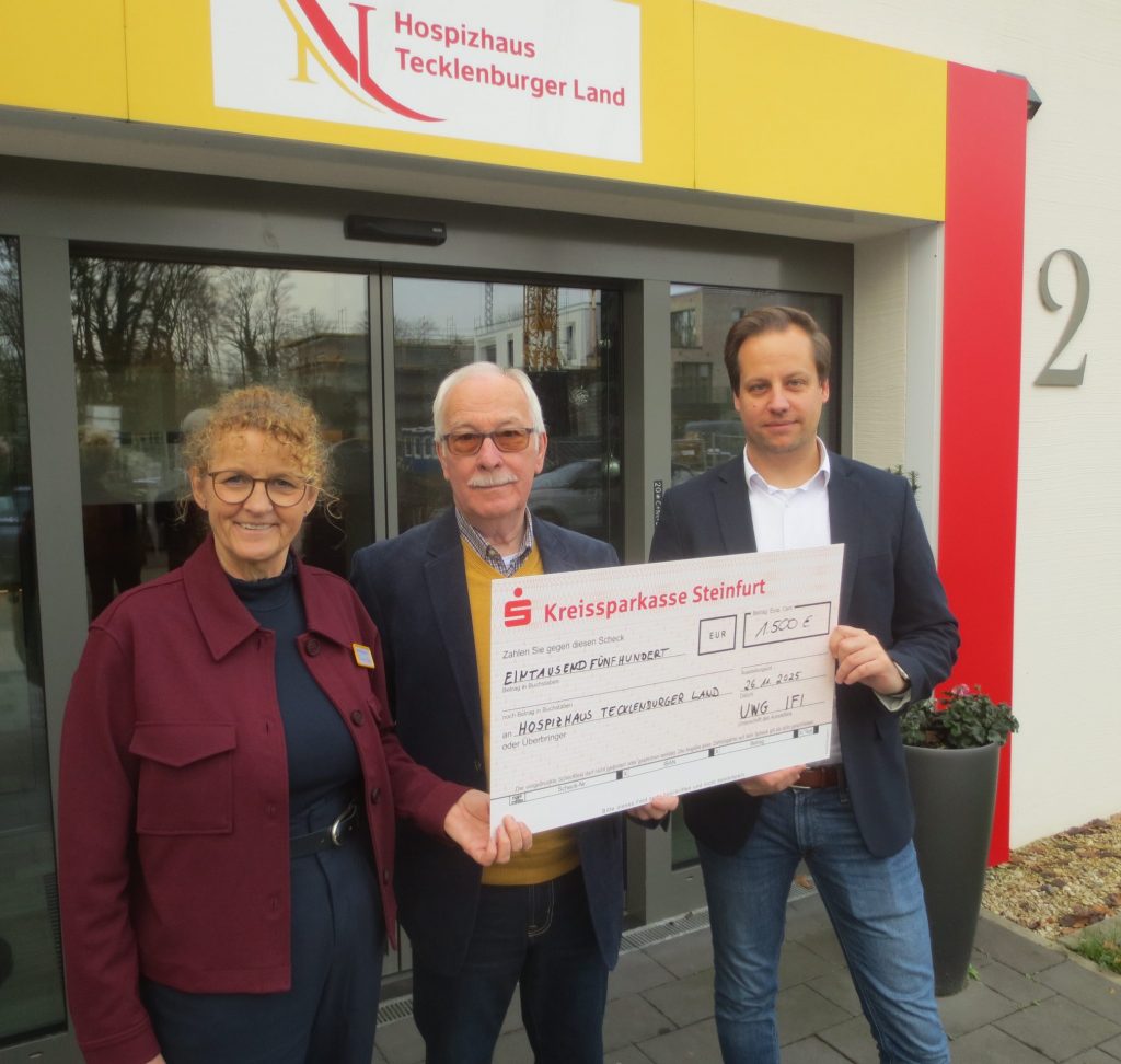 1.500 Euro für das Hospizhaus Tecklenburger Land entgegen. Überreicht wurde sie